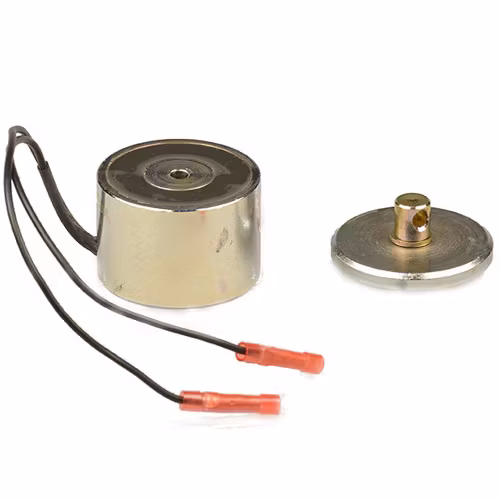 Hållmagnet 24V med dragplatta för montage i röklucka. Dragplattan monteras med S-krok och smältbleck. D: 45mm