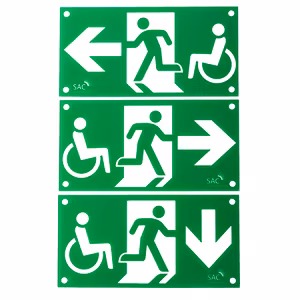 Handikapp piktogram passande SAC-MINI-LEDBild på rullstol Pil höger,vänster,nerLängd: 196 mmBredd: 100 mmMaterialtjocklek: 1 mm
