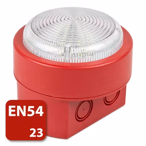 Kraftfullt optiskt larmdon tak- eller väggmonterat röd/vit blixtljus som är energisnålt tack vare LED-teknik. Via omkopplaren väljs röd/vit växlande eller enbart rött alternativ vitt blixtljus. På omkopplaren ställer man även hastighet. Den klarar att placeras i krävande miljöer och har kapslingsklass IP33C för EN54-23 enligt standadern. Den klarar IP65 men då är den ej EN54-23 godkänd.