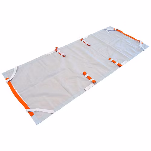 Räddningslakan mellan madrass och säng för snabb evakuering av patient