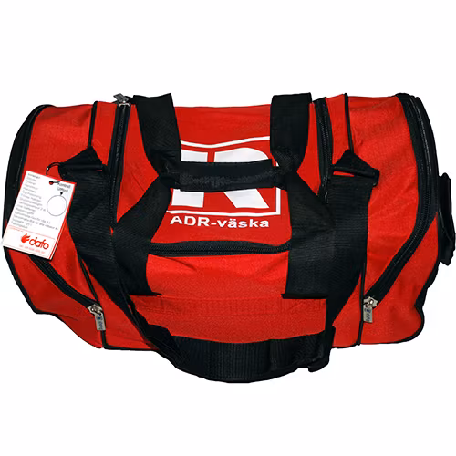 ADR väska komplett med saneringsutrustning.För lastbilar som transporterar farligt gods finns krav på att brandsläckare och annan utrustning ska medföras. Anled
