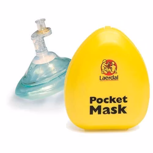 PocketMask innehåller:1 st PocketMask inkl ventil och fillter i gul ask1 par handskar1 st våtservett1 st bruksanvisning på engelska