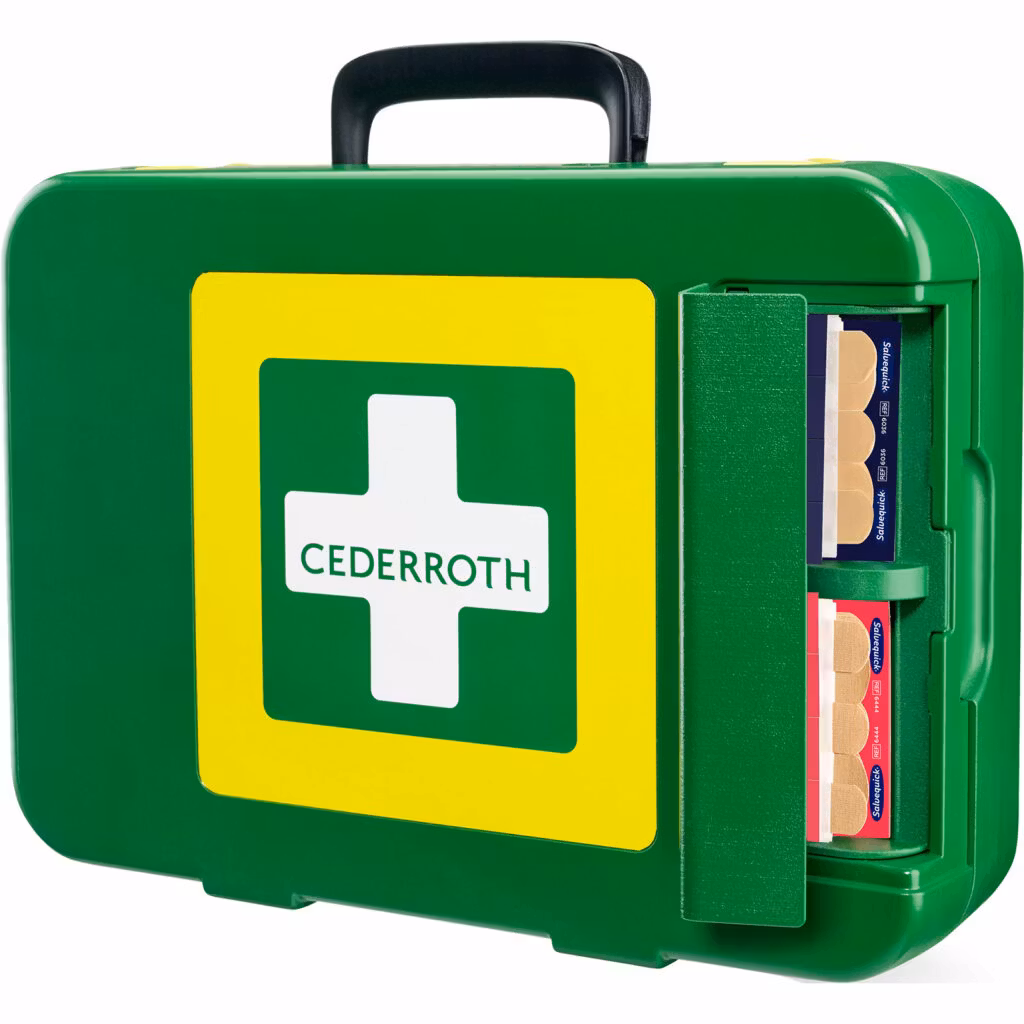 Väskan är tillverkad i hårdplast för att klara tuffa miljöer och för att skydda innehållet mot fukt, damm och smuts. På väskans utsida finns en plåsterautomat som gör det enkelt att ta ett plåster samtidigt som innehållet i väskan hålls orört och hygieniskt rent.