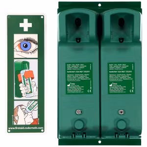 Vägghållare till 2 x 500 ml buffrad ögondusch. Flaskorna säljs separat.