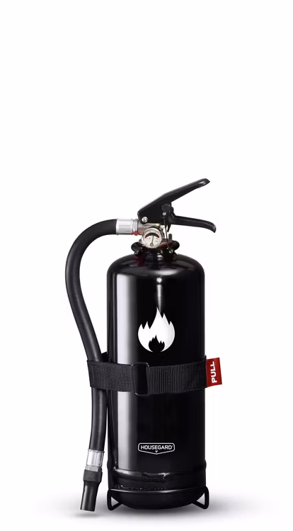 En liten och stilren brandsläckare med 2 kg pulver som kan placeras överallt. Brandsläckarna i serien Design by Housegard är avsedda för hemmamiljöer, där användaren kan förväntas veta var släckaren är placerad.