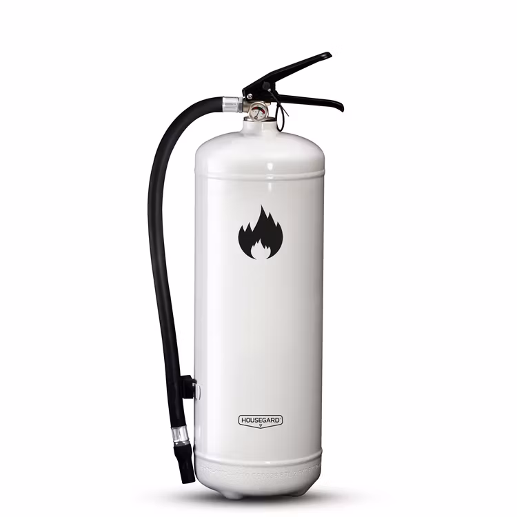 En designad 6 kg-pulverbrandsläckare som släcker alla typer av bränder och passar in i det moderna hemmet. Den vita brandsläckaren smälter in och blir en del av inredningen, så den kan placeras på platser där den är lättillgänglig om olyckan skulle vara framme. Brandsläckarna i serien Design by Housegard är avsedda för hemmamiljöer, där användaren kan förväntas veta var släckaren är placerad.