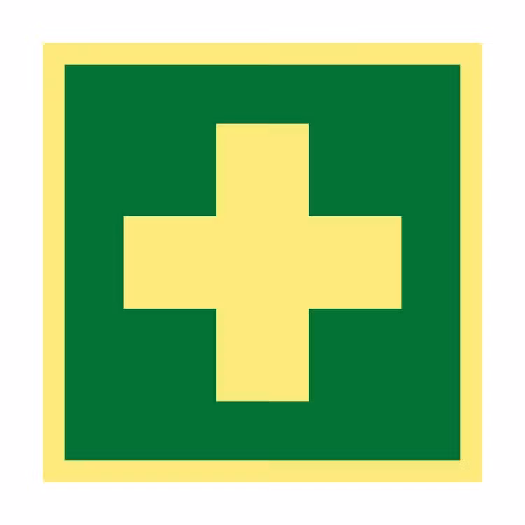 Efterlysande nödskylt första hjälpen. Tillverkad i aluminium.Storlek: 150x150mm, 200x200mm.