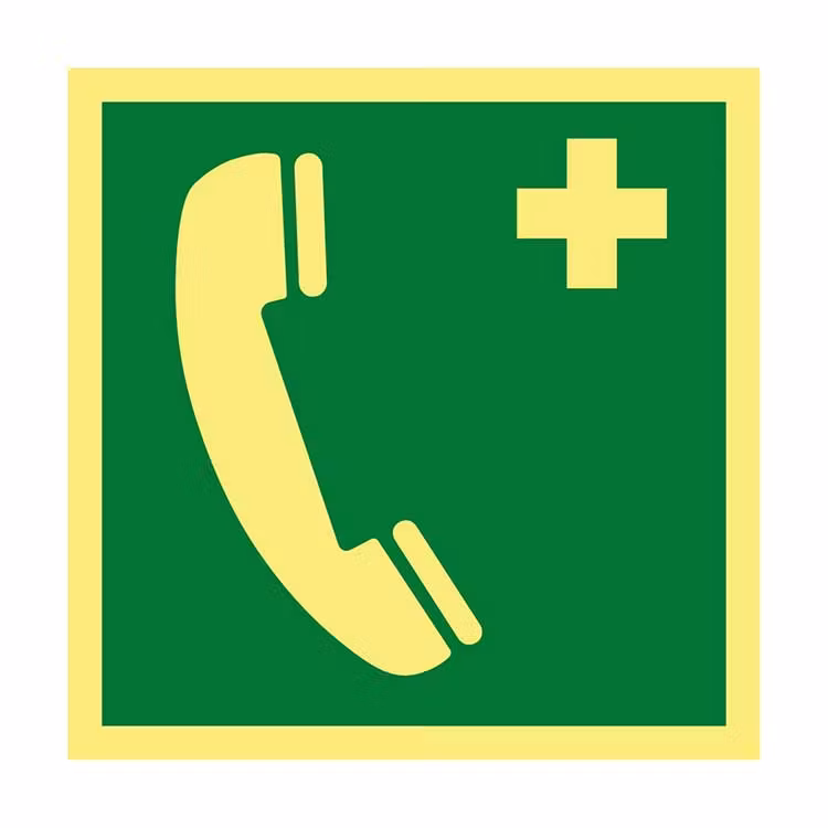 Efterlysande nödskylt nödtelefon. Tillverkad i aluminium.Storlek: 150x150mm, 200x200mm.